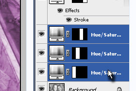 Prej kopiran efekt sej je "prilepil" v označene tri layerje. |