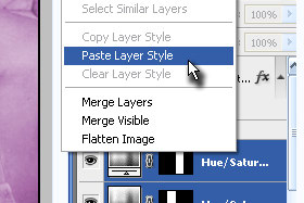 Kliknite z desnim miškinim gumbom na označene tri layerje in izberite Paste Layer Style.