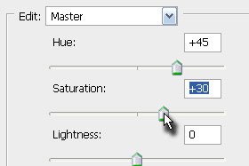 Nastavite sedaj Saturation vrednost na okoli +30 in potrdite na gumb OK.