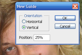V novem oknu označite Vertical in Positon določite 25% (glej sliko).