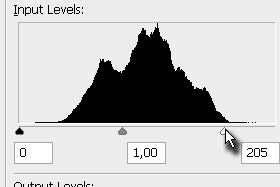 Potem pa pritisnite tipki CTRL + L in v novem oknu beli drsnik (glej sliko) premaknite za malenkost v levo. S tem smo osvetlili osvetljene barve in tako naredili sliko še bolj svetlo. Potrdite na gumb OK. |