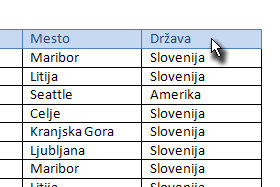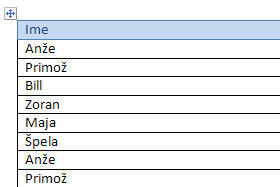 Ustvarite ali odprite dokument, kjer je ustvarjena tabela z podatki, ki imajo v vrhnjih tabelah naslove (glej sliko).