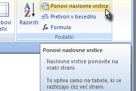 Uporabna funkcija, kjer bomo v dokumentu naslovne vrstice ustvarili na tabelah, ki se raztezajo čez več strani.