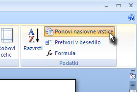 In v polju Podatki izberite Ponovi naslovne vrstice.