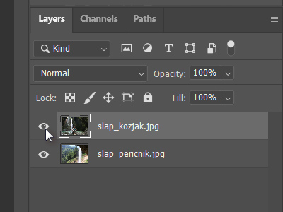 ![]() Odprl se vam bo dokument in naložile fotografije v plasteh (layerjih). Označite sedaj zgodnji layer (glej sliko). |