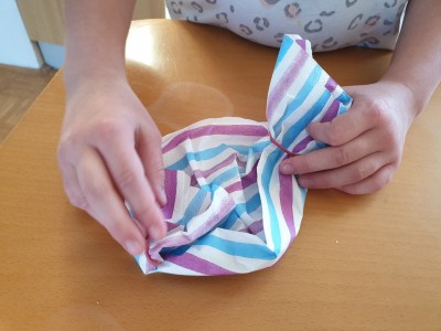 Torej, potrebujemo dve gumici in en papirnat prtiček.