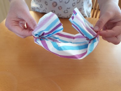 ![]() Papirnat prtiček razprite enkrat in na eni strani naredite zavihek kot sem ga jaz. |