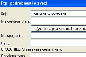 Jaz sem vpisal "moja prva ftp povezava". |