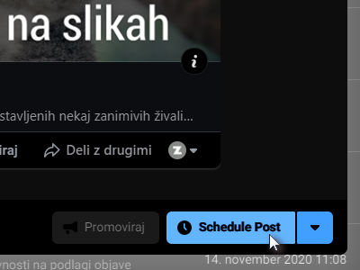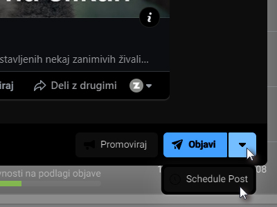 ![]() Ko boste objavo pripravili, kliknite na puščico navzdol pri gumbu Objavi in izberite Schedule Post. |