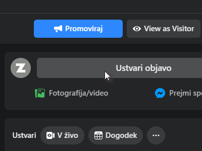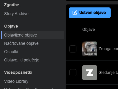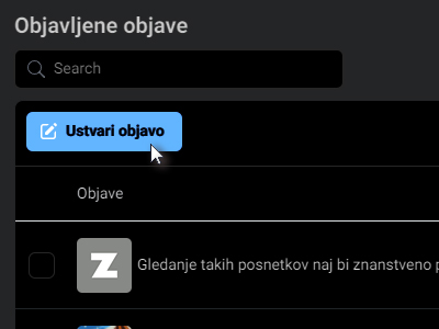 ![]() Na novi strani, kjer imate predgled nad vsebimi objavami, kliknite na gumb Ustvari objavo. |