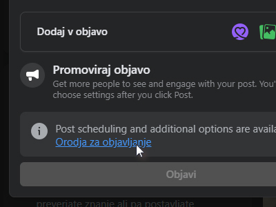 ![]() Objava pa bo ob nastavljenem času prikazana tudi na vaši vhodni Facebook strani. |