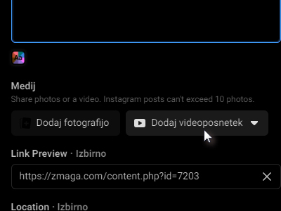 ![]() Namesto povezave ali besedila lahko dodate tudi sliko ali videoposnetek. |