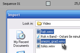 Potem pa označite prvi uvoženi posnetek...