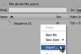 Kliknite na sivo polje (glej sliko) z desnim miškinim gumbom in izberite Import...