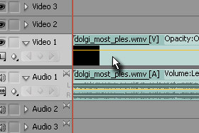Z miško sedaj držite uvožen video posnetek in ga povlecite v polje Timeline, točneje v vrsto Video 1 (glej sliko).