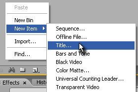 Kliknite z desnim miškinim gumbom na sivo podlago, kjer so uvoženi video posnetki, izberite New Item in nato Title...