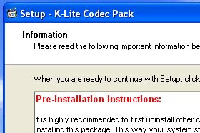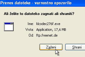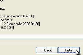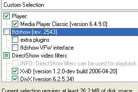 Jaz sem umaknil kljukico pri ffdshow in potrdil na gumb Next. |