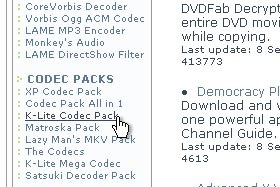 Na spletni strani poiščite povezavo K-Lite Codec Pack in kliknite nanjo.