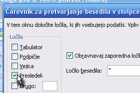 V naslednjem oknu označite Presledek, saj naša imena in priimka ločuje presledek.