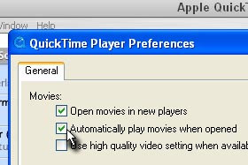 Nastavite QuickTime predvajalnik tako, da bo filmske datoteke avtomatsko začel predvajati, ko jih boste odprli.