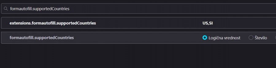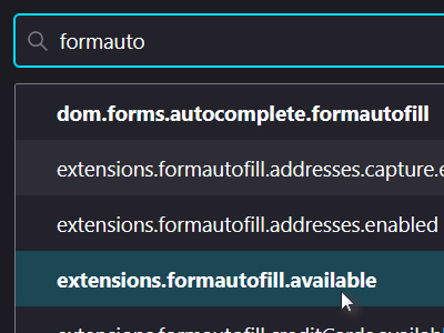 ![]() V iskalnik vpišite formauto in nato označite extensions.formautofill.available. |