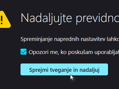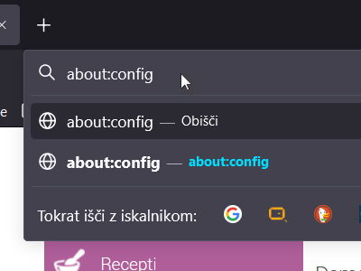 V Firefoxu v polje za naslov vpišite in potrdite about:config.