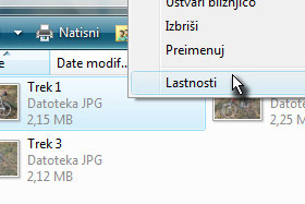 Da boste vedeli, kaj počnemo, kliknite na poljubno datoteko z desnim miškinim gumbom in izberite Lastnosti.