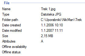 Če ponovno pogledate lastnosti datoteke, ki ste jo spreminjali, boste opazili nova datuma (glej sliko).