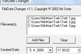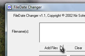 Odprl se vam bo program FileDate Changer, kjer kliknite na gumb Add Files.