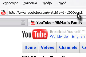 Sedaj pa odprite nek poljuben YouTube posnetek in shranite celoten spletni naslov.