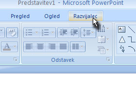 Prikazal se vam bo novi zavihek Razvijalec.