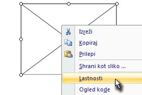 Na ustvarjeno označitev kliknite z desnim miškinim gumbom in izberite Lastnosti.
