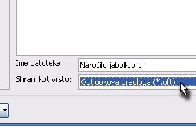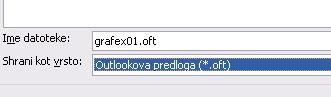 V novem oknu prvo določite vrsto Outlookova predloga (*.oft) in v ime datoteke vpišite poljubno ime.