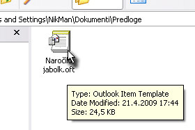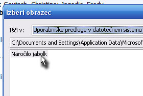 Sedaj vam bom pokazal še, kako se dostopa do predlog, ki so shranjene v privzeti mapi.