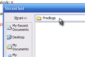 Shrani v pa izberite poljubno mapo, kjer želite imeti shranjene predloge.