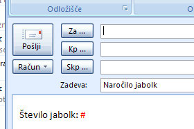 Ustvarite poljubno sporočilo in tudi določite prejemnika in zadevo.