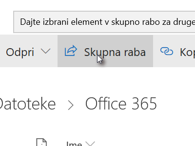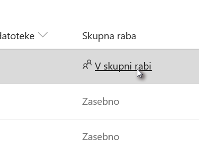 ![]() V OneDrive boste opazili, da ima nastavljena datoteka vklopljeno skupno rabo. Kliknite na V skupni rabi, da odprete nastavitve. |