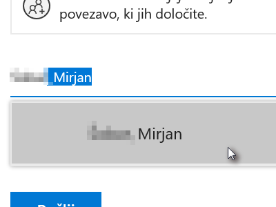 ![]() V novem oknu vpišite priimek sodelavke ali sodelavca in ga označite, ko se bo prikazal, da ga dodate. Dodajate lahko poljubno število oseb, če želite. Kliknite na gumb Pošlji, ko boste dodali osebe.