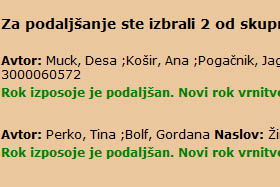 Označite tiste knjige, ki jih želite podaljšati, in kliknite Želim podaljšati. |