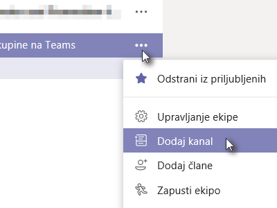 ![]() Kliknite na tri pikice, ki predstavljajo več možnosti (glej sliko) skupine in nato izberite Dodaj kanal. |