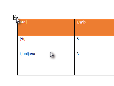 ![]() Celice lahko tudi povečate tako, da jih z miško primite za rob in spremenite velikost.
