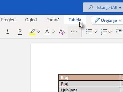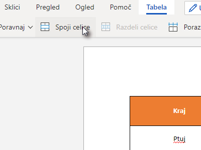 ![]() Označite dve celici znotraj tabele in kliknite na Spoji celice, če želite dve celici združiti. |