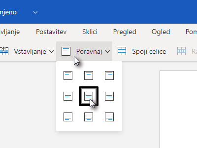 ![]() Poravnajte besedilo poljubno tako, da kliknete na gumb Poravnaj in izberete možnost. |