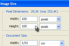 Sedaj pri Pixel Dimensions nastavimo velikost za avatar. 100x100 za forume, 96x96 za MSN. Potrdite na gumb OK. |