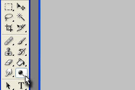 Sedaj kliknemo na tipko Dodge Tool. Bljižnica je tipka O.