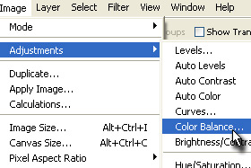 Zgoraj kliknite Image -> Adjustments -> Color Balance.