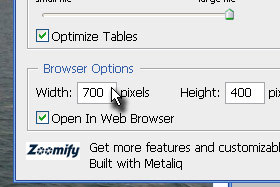 Open In Web Browser naj bo označeno.