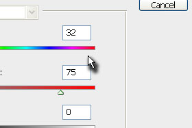 Sedaj moramo sliko tudi pobarvati, pritisnite tipki Ctrl+U in uporabite nastavitve prikazane na sliki.