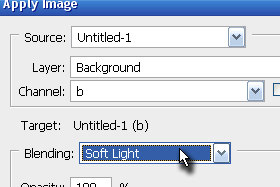 V novem oknu Blending preko izbirnika določite Soft Light in potrdite s klikom na gumb OK.
