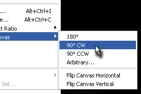 Kliknite zgoraj na Image, Rotate Canvas in izberite 90 CW.